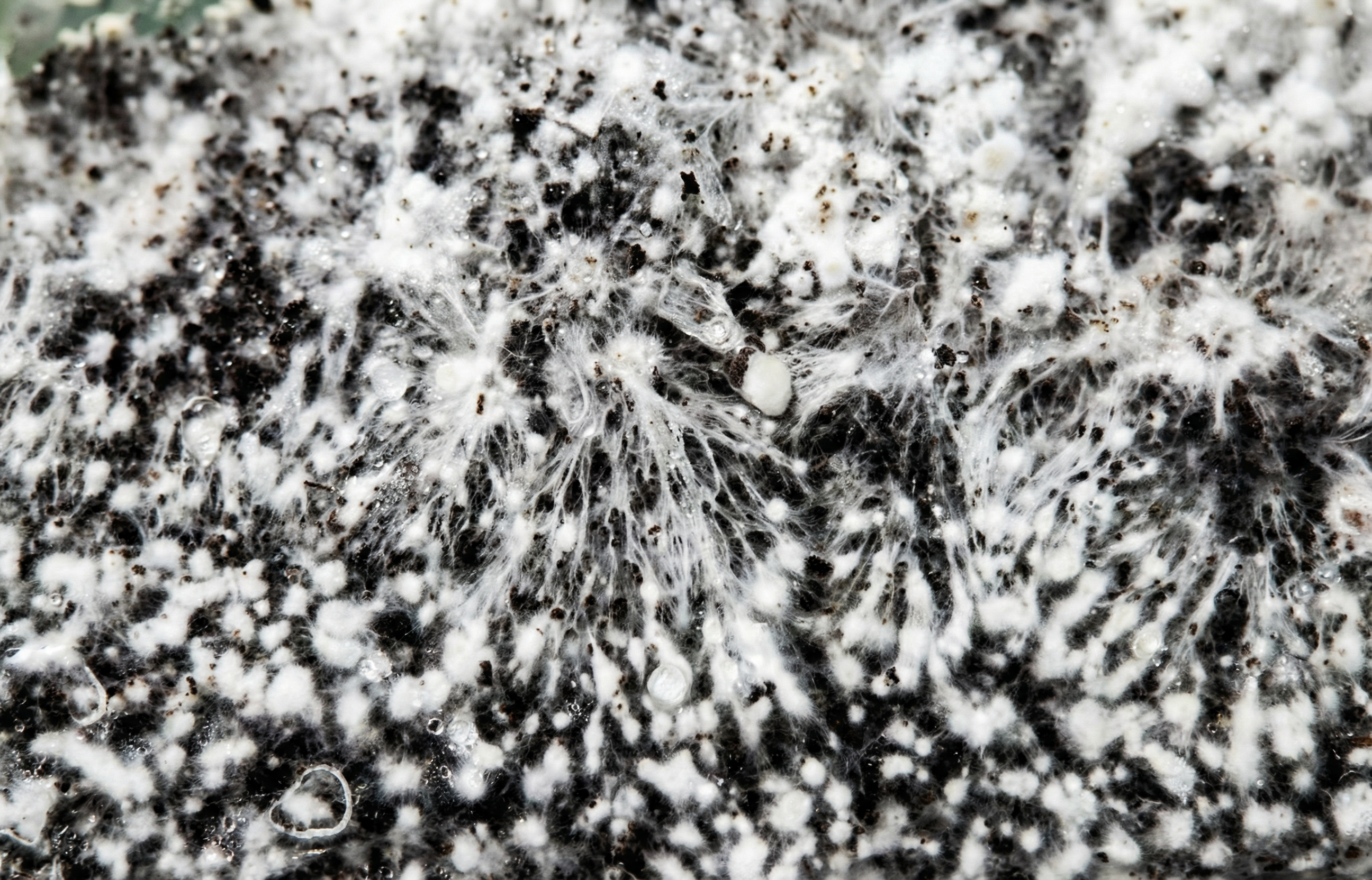 Tiene un aspecto algodonoso o aterciopelado, con abundantes ramificaciones cortas. Este tipo de micelio suele observarse en superficies ricas en nutrientes.