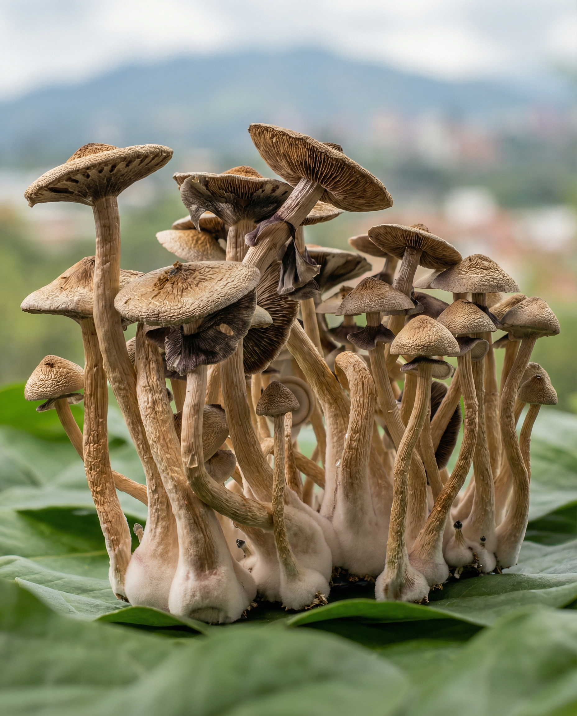 Beneficios: Contiene psilocibina, que puede generar experiencias conscientes, introspección y potencial terapéutico en contextos controlados. Estudiado para ansiedad, depresión y adicciones en entornos clínicos.